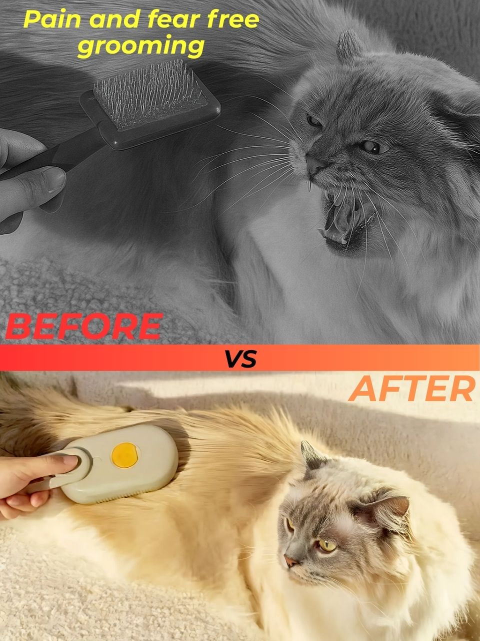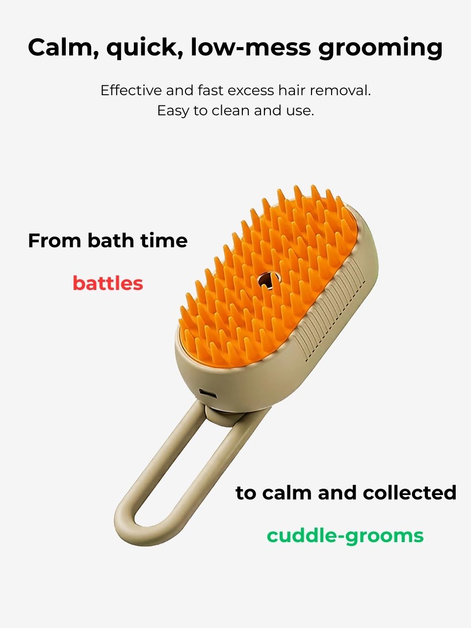 Grooming doesn’t have to be a battle. Our gentle mist brush tames fur and keeps pets comfortable while you brush.